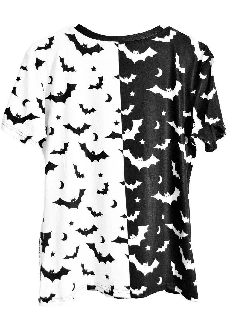 The latest trend in popular bat pattern design. Bat design is full of personality and the split design gives a fresh new look. The material feels comfortable against the skin and it is a shirt that wears very well.
