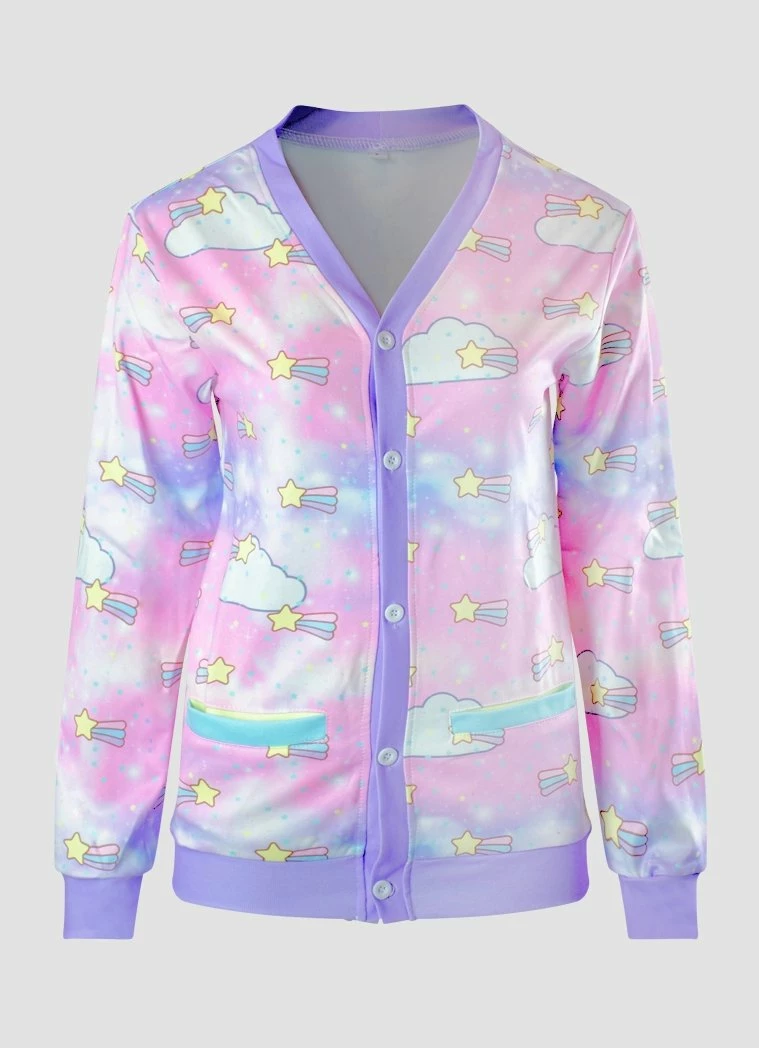 Make a stand against all the boring Cardigans out there and pick up this super cute shooting star cardigan sweater. Being cute is serious business, so it’s important to have the right accessories when you’re feeling adorable. Be prepared to catch everyone’s eye with this ultra kawaii style. The pastel colors and starry design also make it ideal for outdoor festivals or nighttime strolls under the full moon. There’s no need to take a detour through space because you always look fly—just fire off those cool vibes in this stylish sweater!