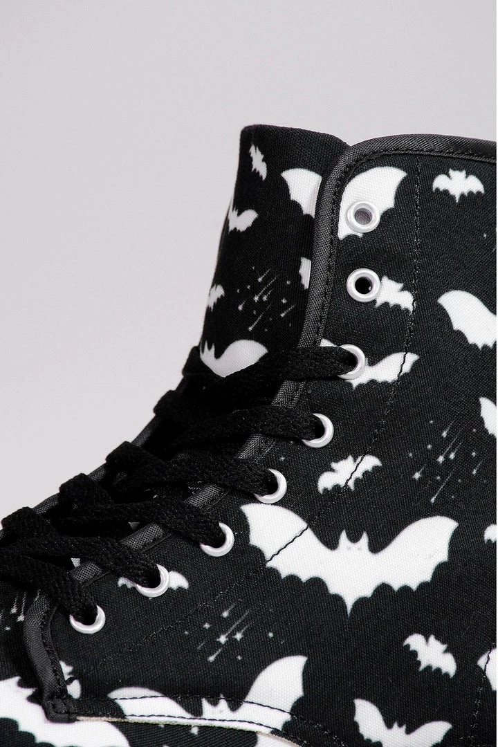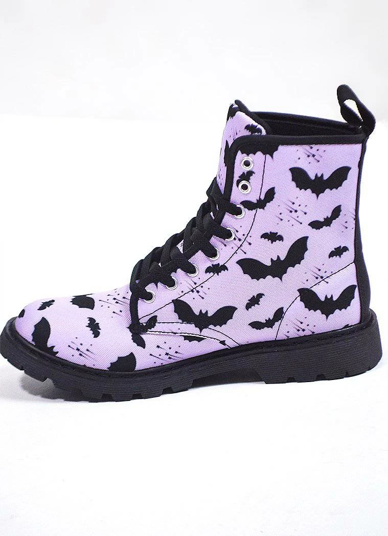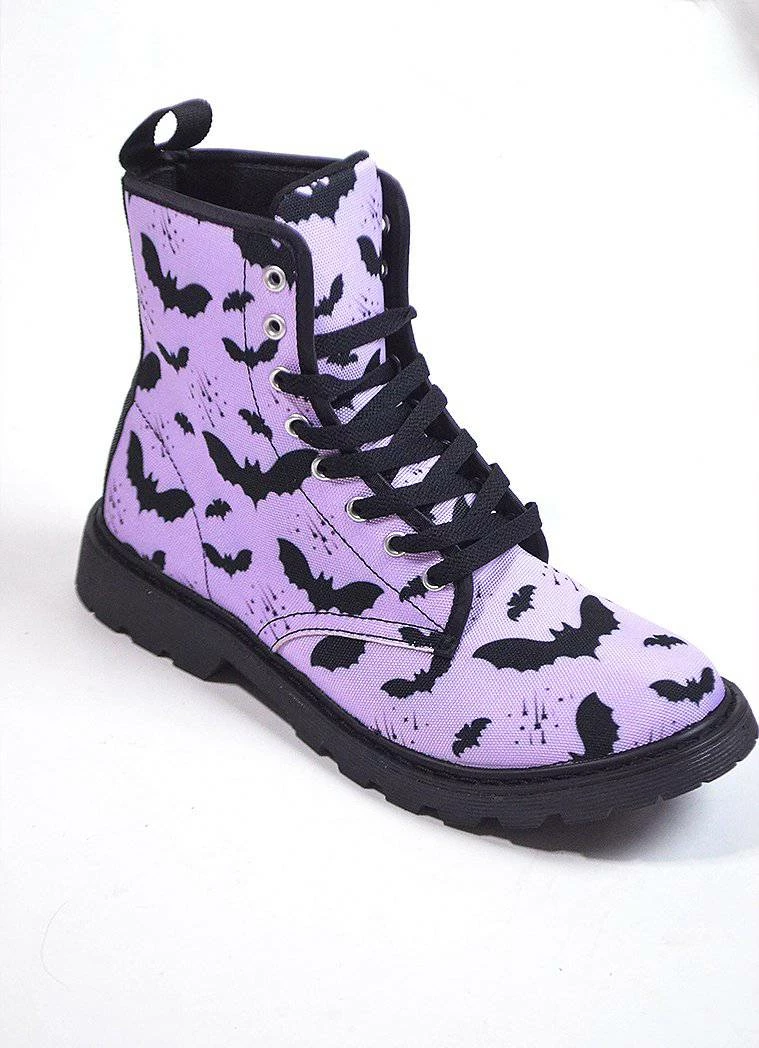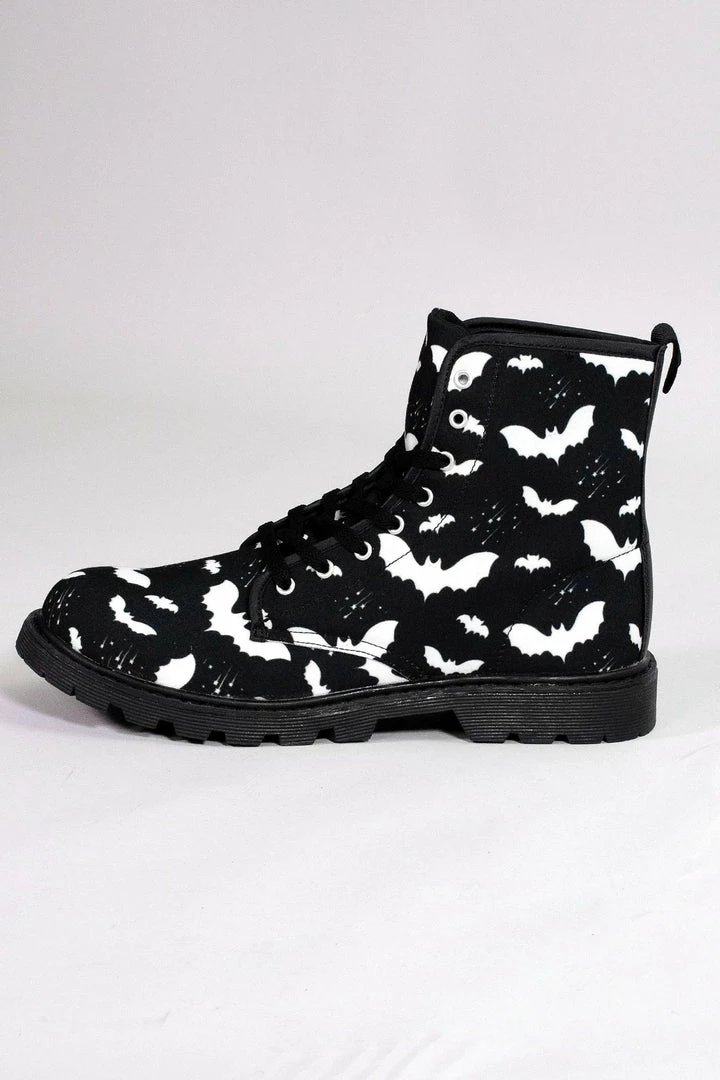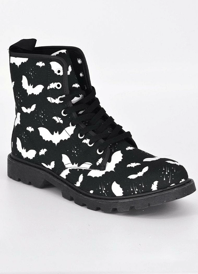 - Bat Pattern Combat Boots Highlights: