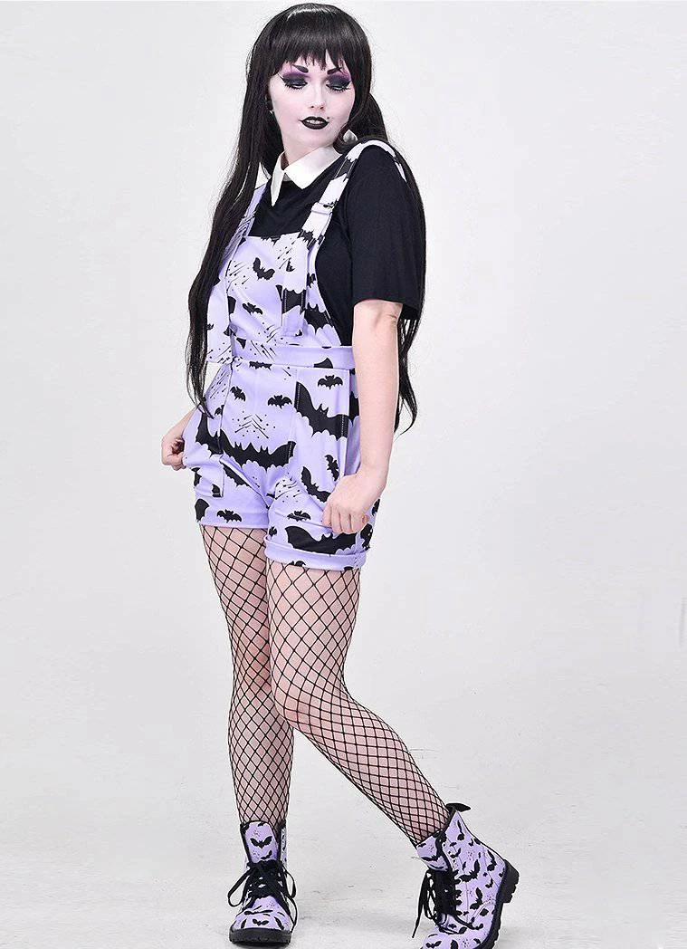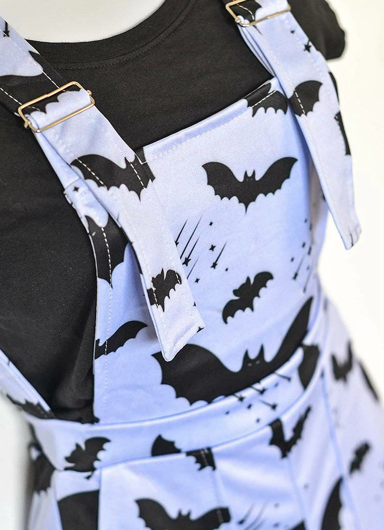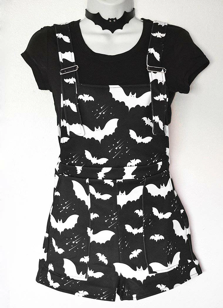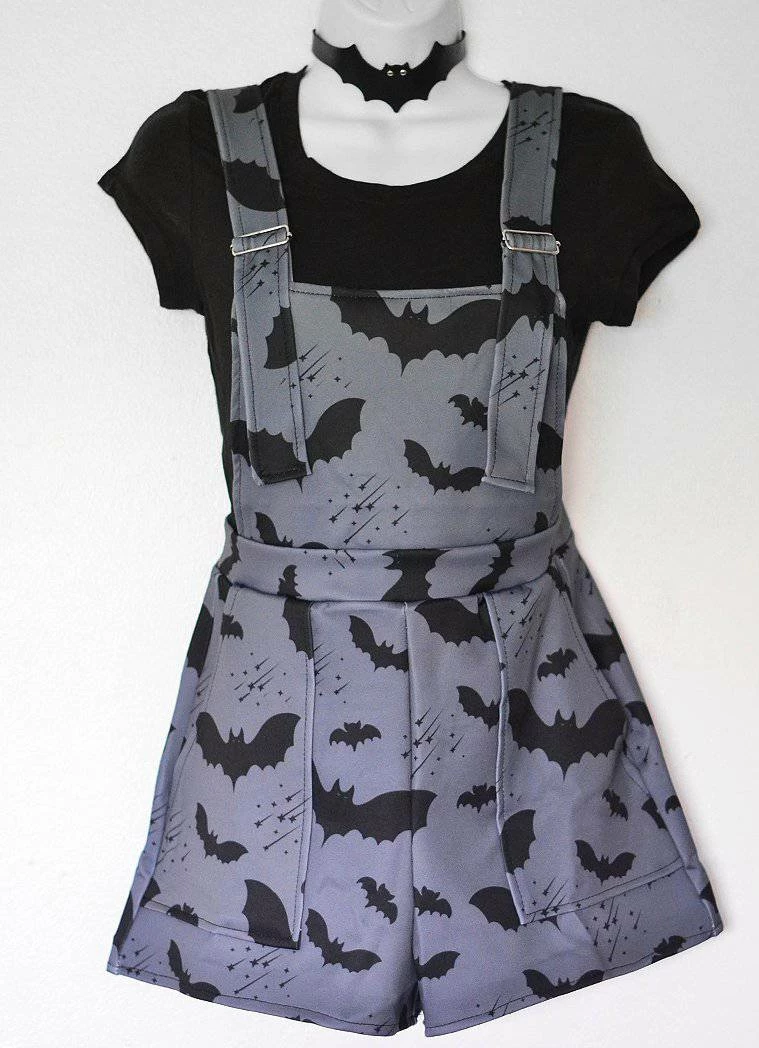 Celebrate Halloween all year-round with the spooky Bat Pattern Overalls from our In Control Clothing fashion boutique. This beautiful addition from our online women’s clothing boutique features a well-cut fit and pockets, emblazoned with several black bats and shooting stars. Pair these overalls with our Bat Pattern Combat Boots for a gorgeous matching look. Order your own today and shop our best selling women’s boutique items!