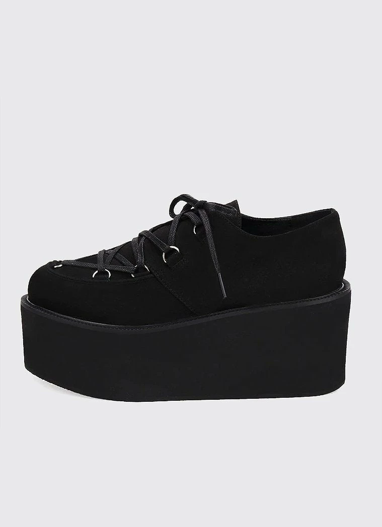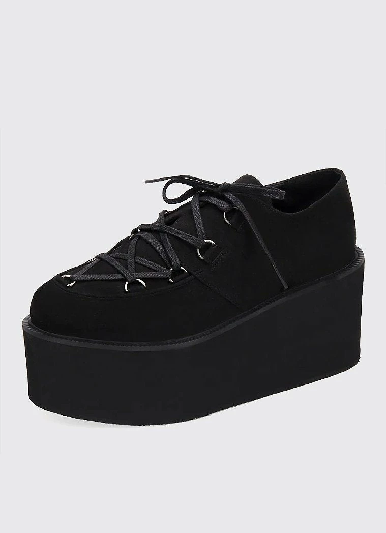 These Black Knight Platform Sneakers are an absolute must-have to complete your wardrobe with the right finishing touches. They feature a lace up design and a 3″ inch platform heel making them stand out . The Black Knight Platform Sneakers are a perfect match for a goth aesthetic look or a good contrast to any outfit.