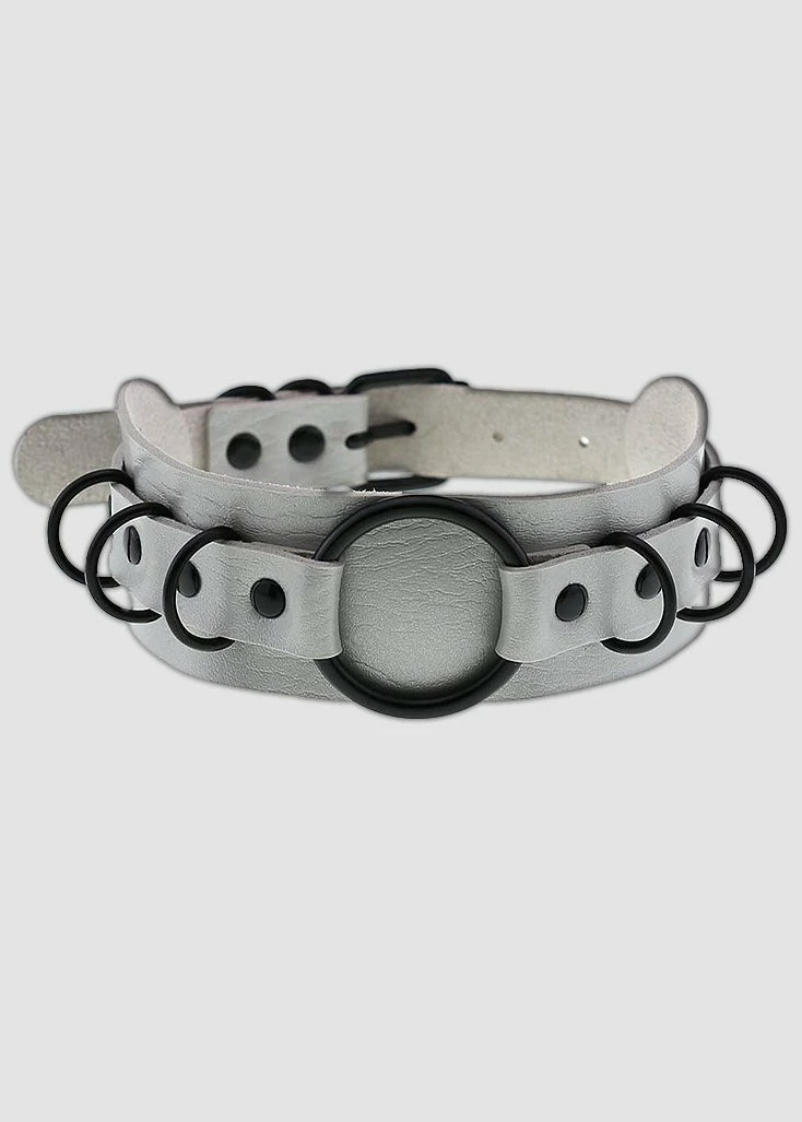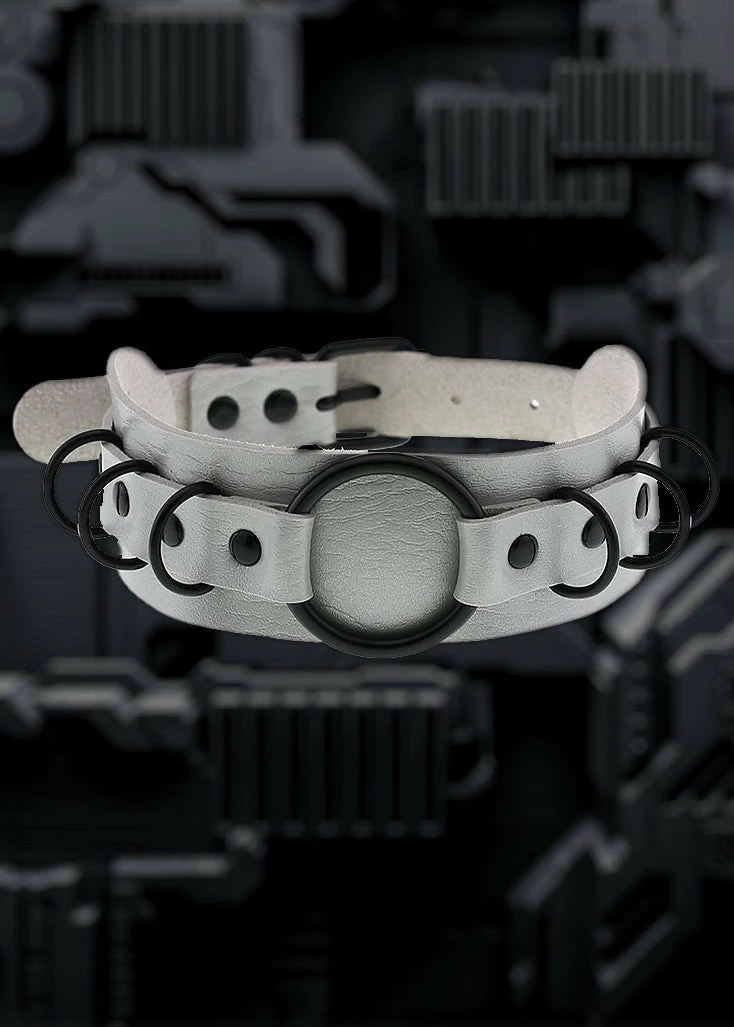 This Cyber Goth Grey Choker Necklace is made of Alloy + PU Leather, Cyber Themed necklace, Comfortable and Sturdy. Handmade O-Ring Faux Leather Choker necklaces