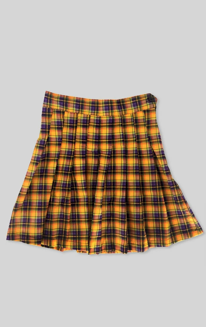 Our Plaid Fall-themed skirt is the perfect addition to any Halloween outfit. This fall skirt is a Cotton / Polyester Blend.