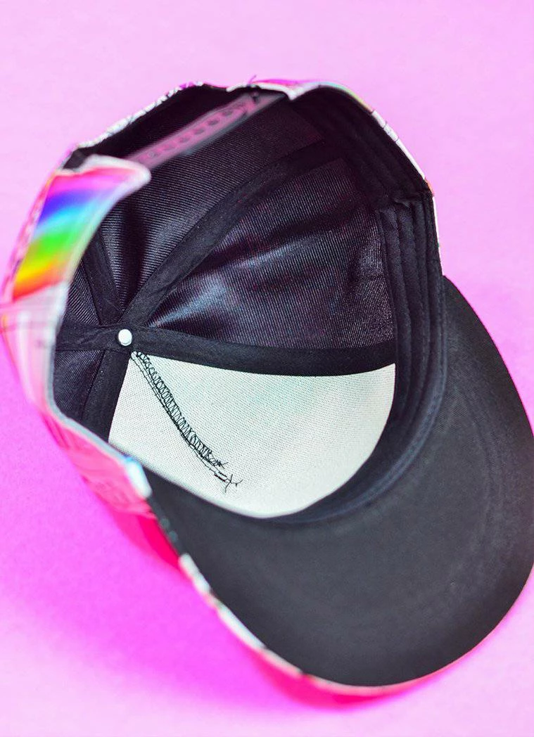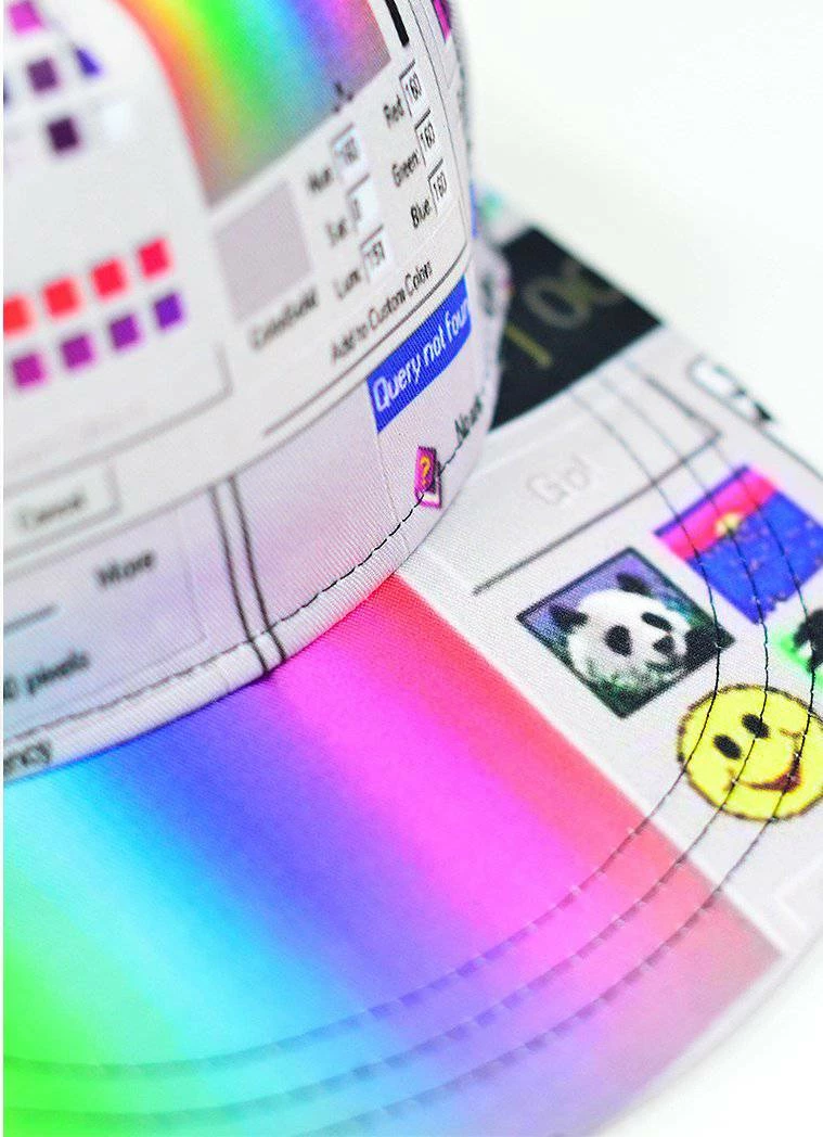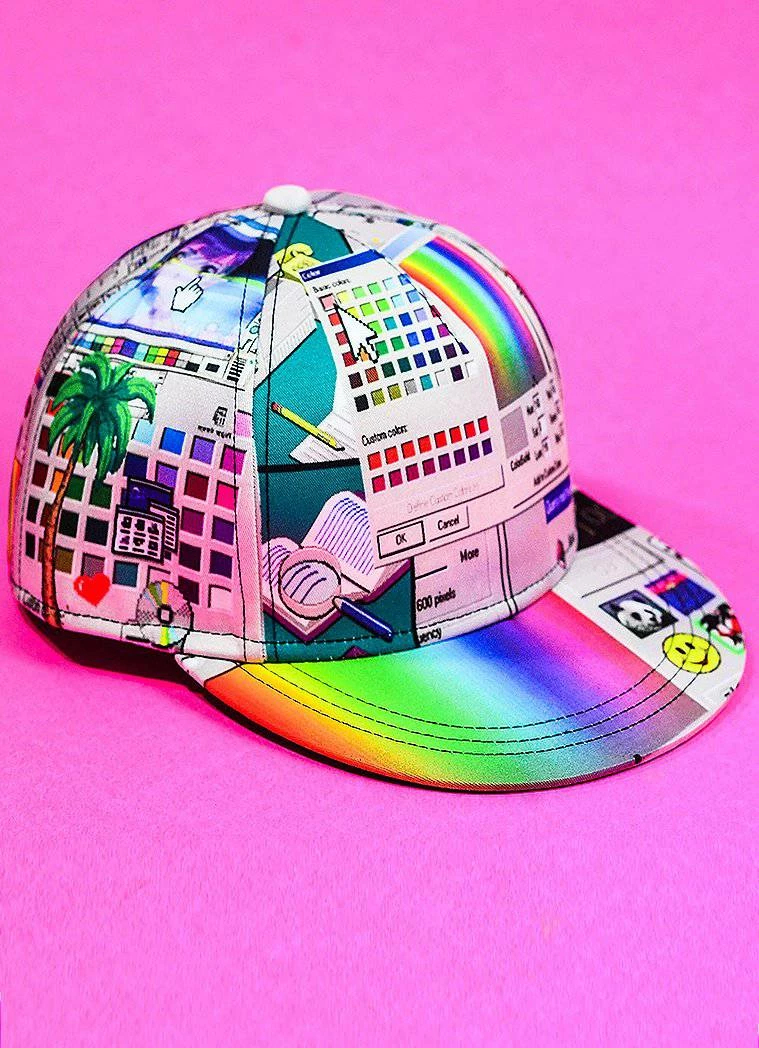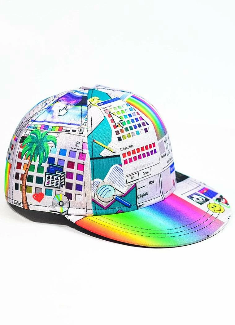 Vaporwave Computer Glitch Hat. Inspired by the experimental genre Vaporwave in music, this hat features a pixelated glitch computer graphic. This hat is a must have for any Vaporwave fan.