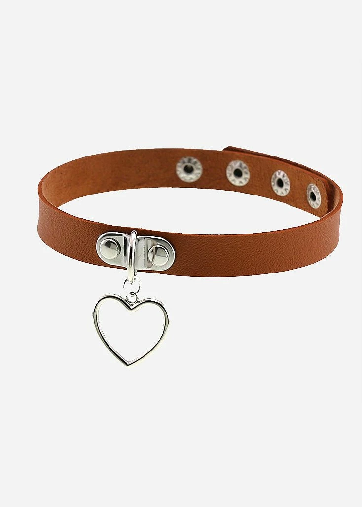 This Brown Kawaii Style Heart Pendant Choker Necklace is made of Alloy + PU Leather, This Kawaii choker is comfortable and sturdy, charming yourself, best matching for you.