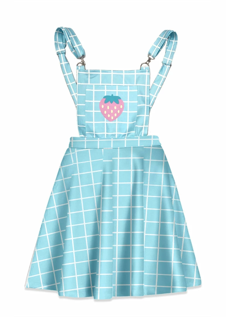 Kawaii Strawberry Gird Dress Overalls are made of polyester and spandex.