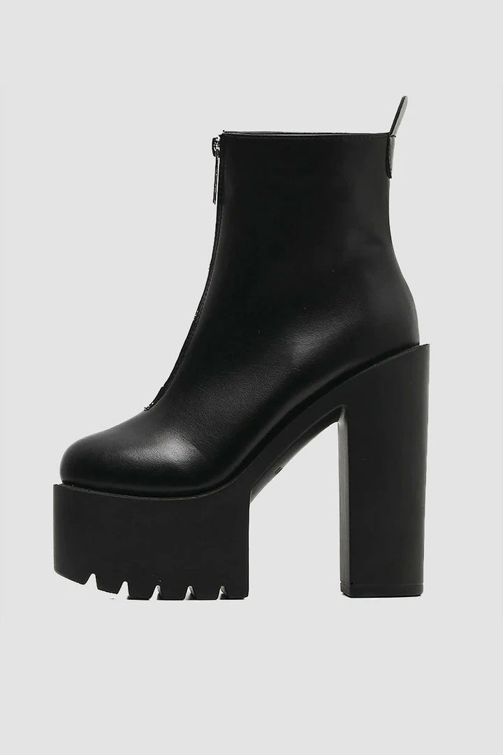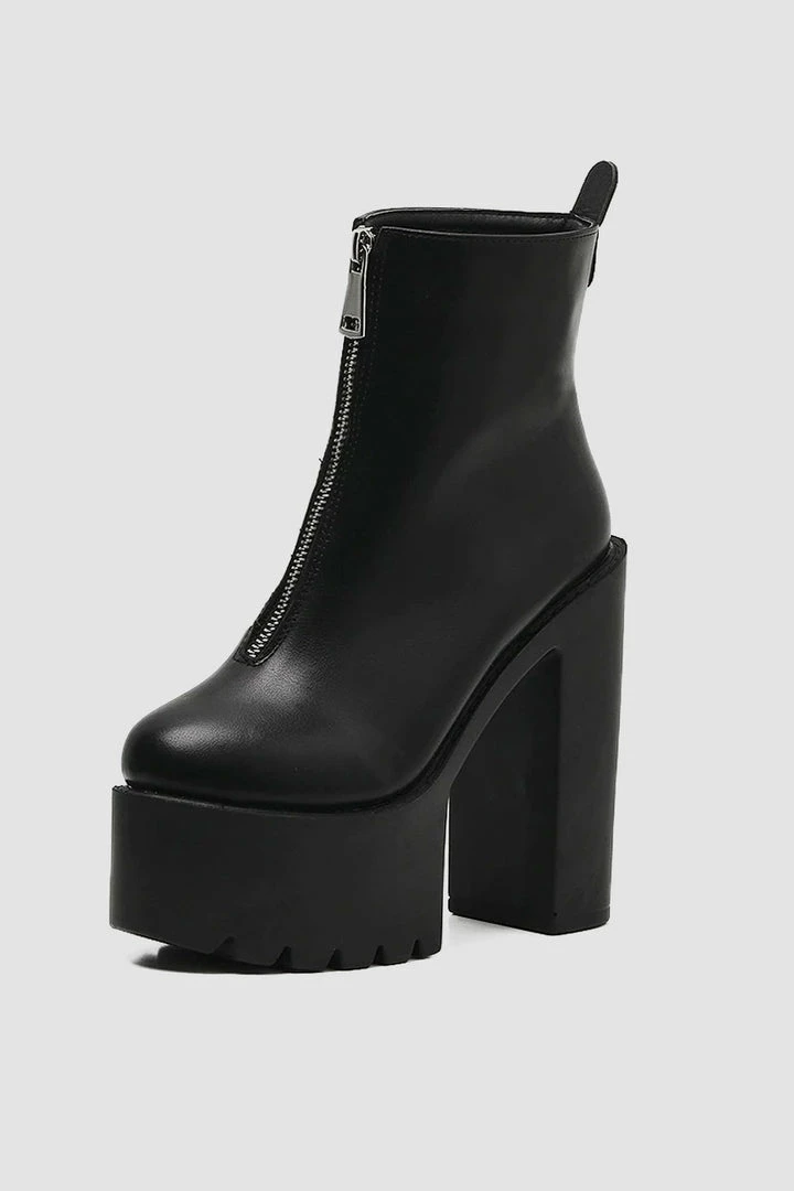 Featuring a comfortable fit and classic Zip-cup closure, this casual chunky heels is a stylish addition to any wardrobe. Get ready to mesmerize the night sky with this Midnight Lover Zip Up Ankle Heels. It features a black design and comes with a zipper in the front for easy on-and-off wear. It has a platform heel and ankle straps that allow you to wear this heels comfortably. Walk with confidence wearing this pair of heels and look effortlessly stylish every step of your way.