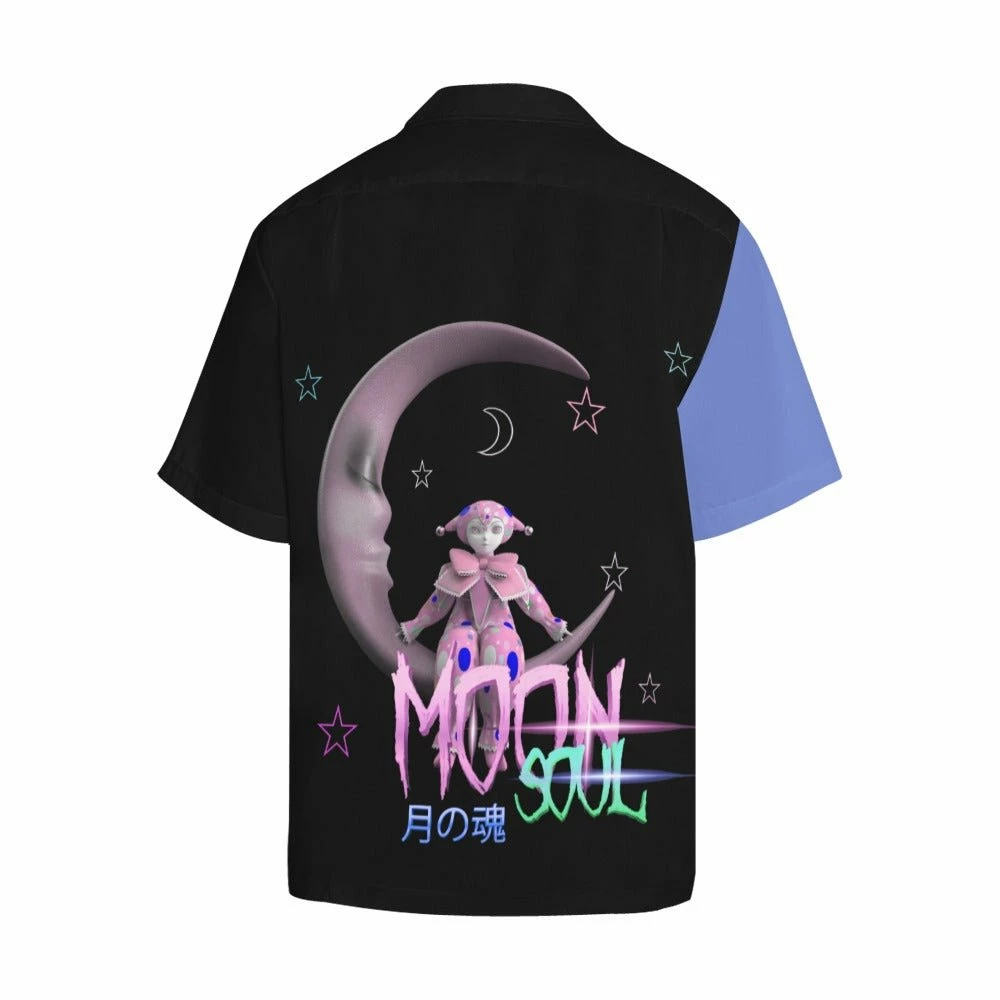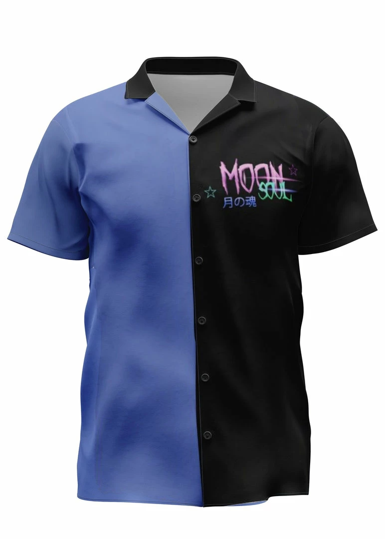 Moon Soul Blue and Black Shirt is a dreamcore mix with Clown elements inspired design featuring boxy-fit with short sleeves and notch lapel collar, this lightweight 4-way stretch shirt is a perfect