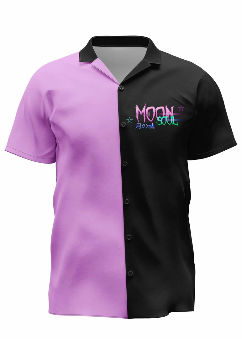 Moon Soul Pink and Black Shirt is a dreamcore mix with Clowncore elements inspired design featuring boxy-fit with short sleeves and notch lapel collar, this lightweight 4-way stretch shirt is a perfect