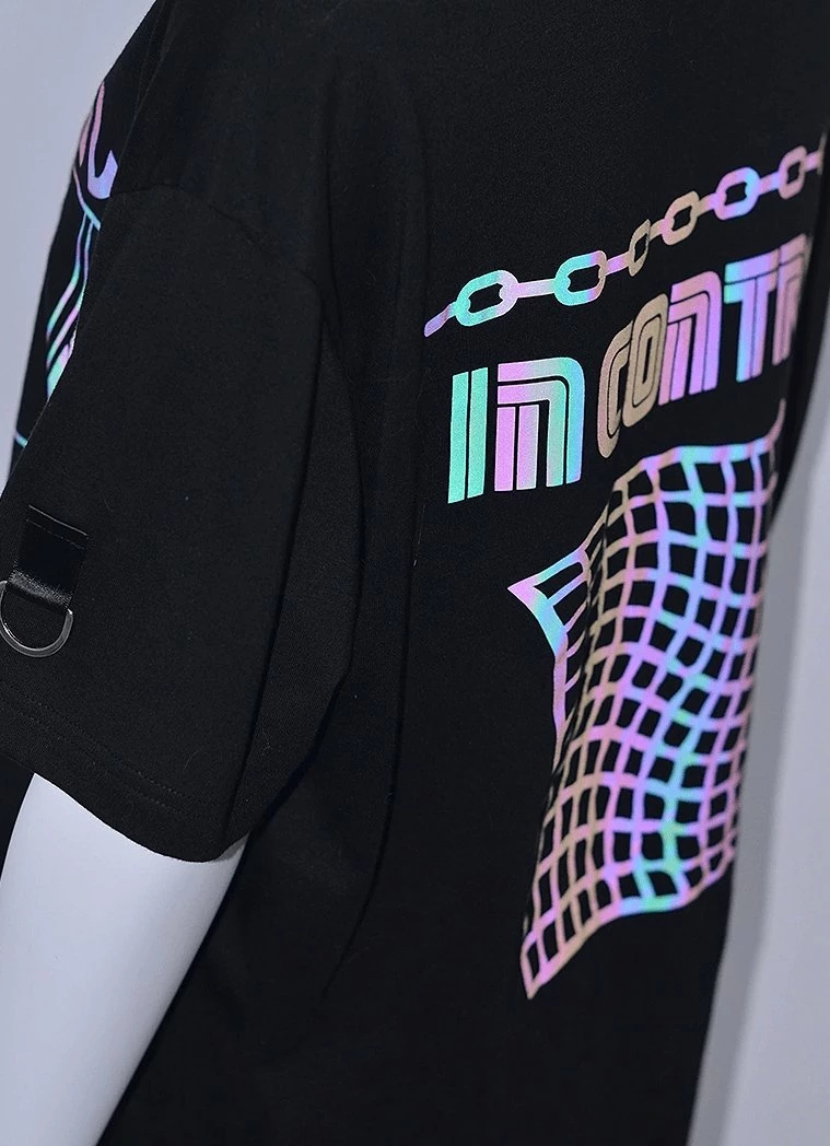 Stand out with the technicolor Next Level Reflective T-Shirt, available in unisex sizes from the In Control Clothing fashion boutique. With matching designed on both the front and back, this dynamic, eye-catching shirt is perfect for both men and women. Shop similar products in our collections and place your order today!