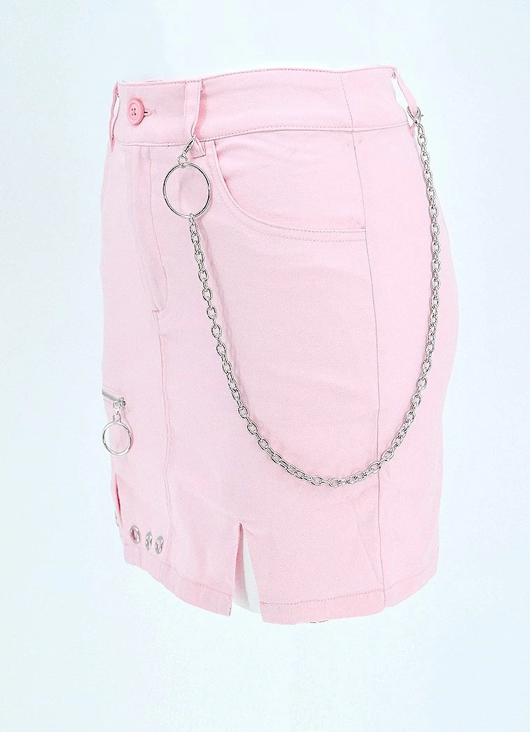 Make your closet more versatile! The Pink Aesthetic Mini Skirt from In Control Clothing fashion boutique is the perfect choice for pairing with several different tops. This women’s clothing boutique skirt features a solid light pink color, with chain detail and zipper on either side. Create an entire outfit with a variety of our In Control Clothing fashion accessories today!