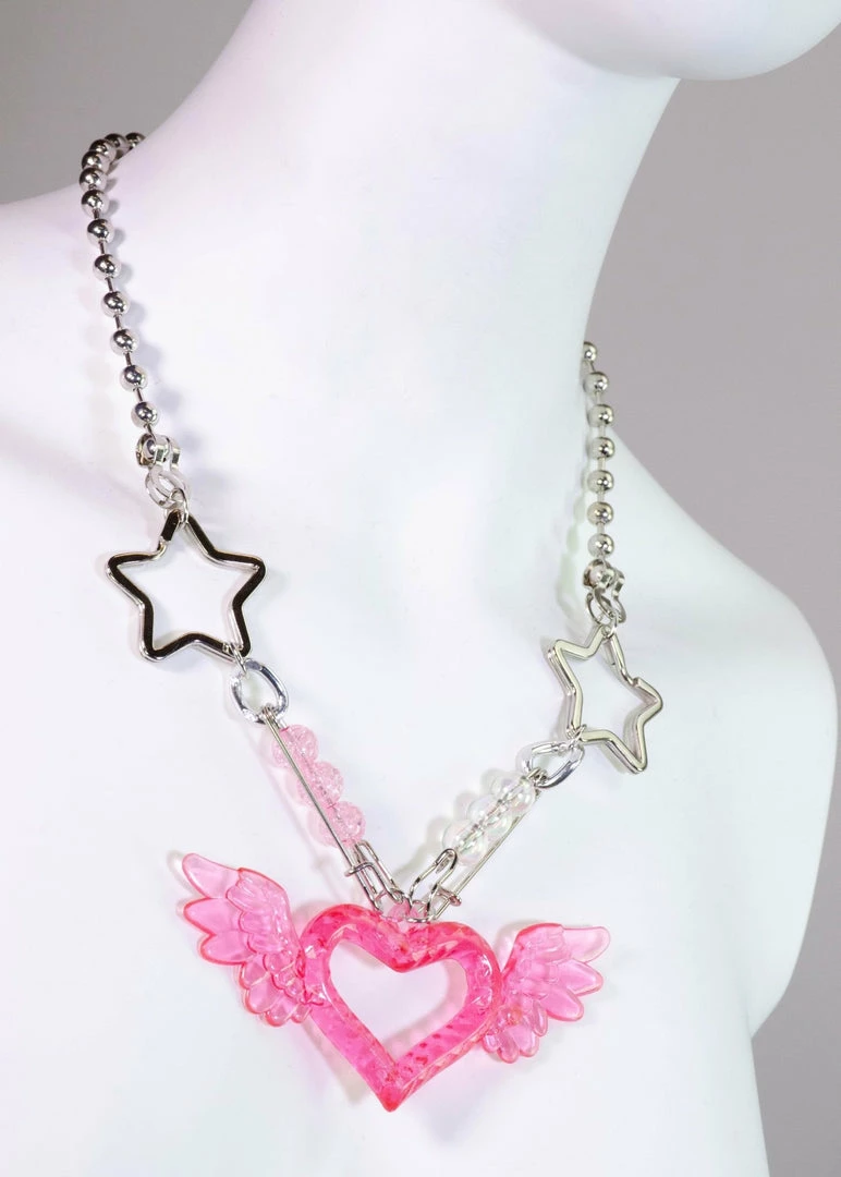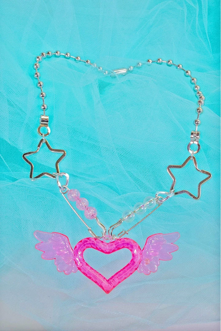 Look no further for an adorable y2k necklace piece. The Y2k Chain Heart Necklace , creates a subtle yet effective look you’ll be sure to love. The large pink heart with wings pendant is the centerpiece of this piece and shines vibrantly, adding just the right amount of fun to any outfit. Whether you’re dressing up or dressing down, this necklace will add Kawaii and individuality to your daily outfits.