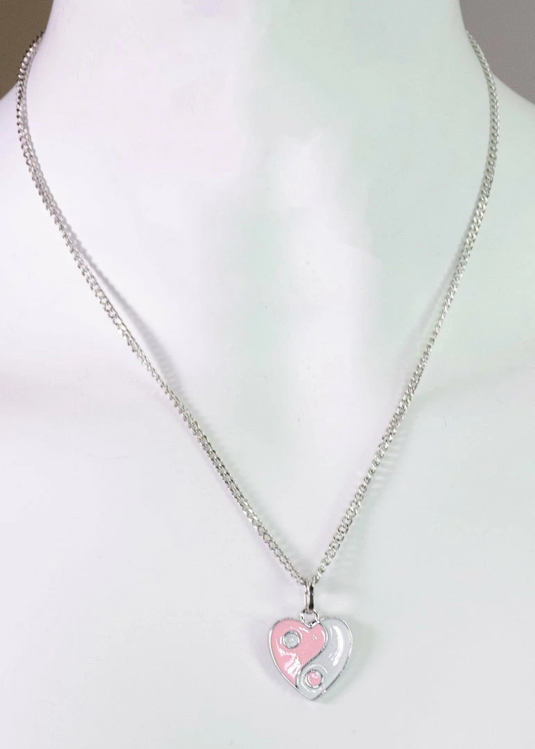 This adorable pink and white heart-shaped Ying Yang necklace is the perfect addition to any outfit. You’ll be sure to stand out from the crowd with this unique piece of jewelry.